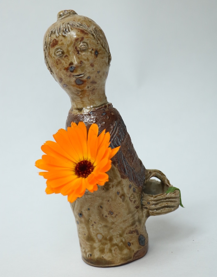 1er prix : « La femme au châle », bouquetière en grès (1953), signée LERAT.