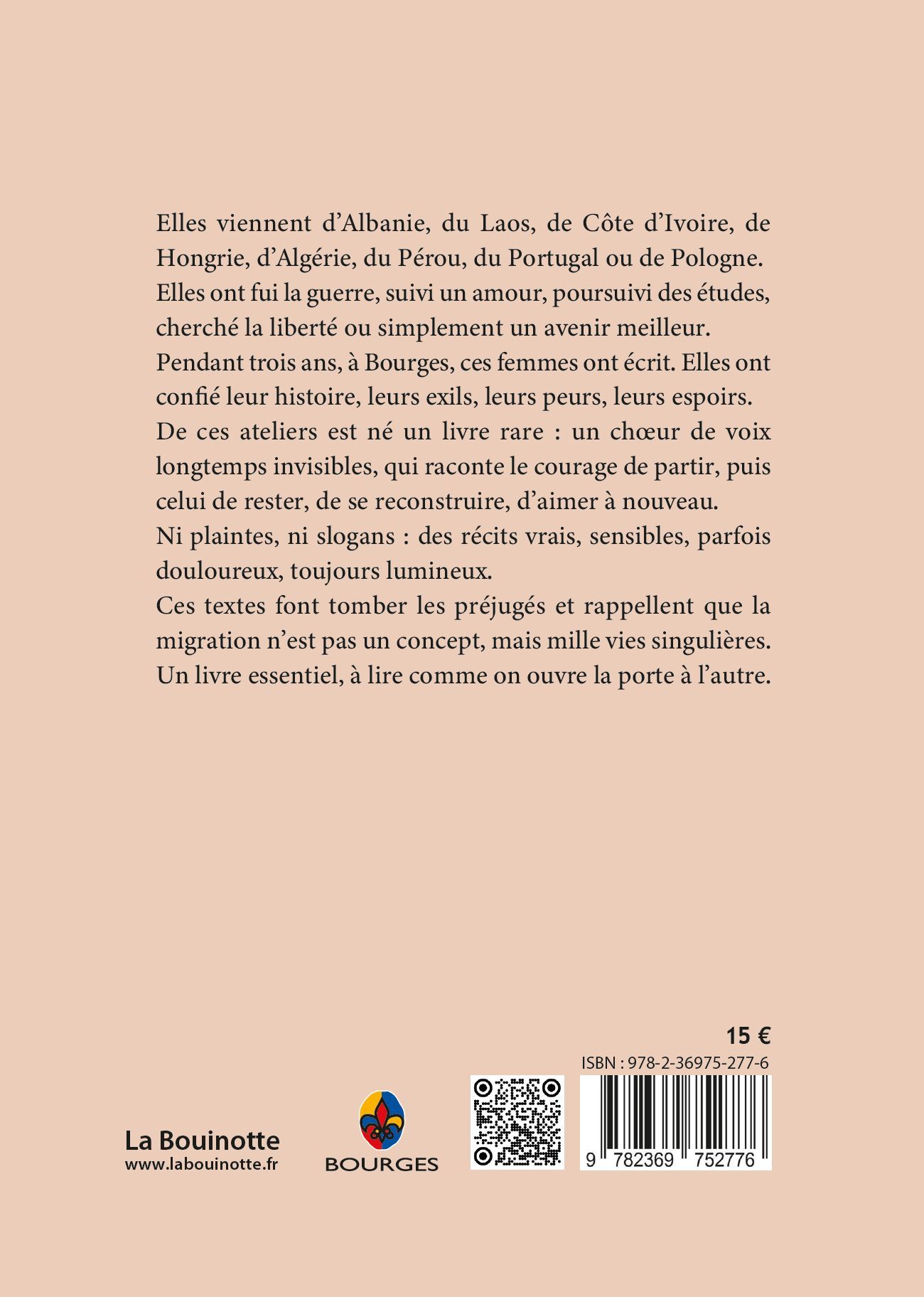 Elles viennent d’Albanie, du Laos, de Côte d’Ivoire, de Hongrie, d’Algérie, du Pérou, du Portugal ou de Pologne. Elles ont fui la guerre, suivi un amour, poursuivi des études, cherché la liberté ou simplement un avenir meilleur.Pendant trois ans, à Bourges, ces femmes ont écrit. Elles ont confié leur histoire, leurs exils, leurs peurs, leurs espoirs. De ces ateliers est né un livre rare : un choeur de voix longtemps invisibles, qui raconte le courage de partir, puis celui de rester, de se reconstruire, d’aimer à nouveau. Ni plaintes, ni slogans : des récits vrais, sensibles, parfois douloureux, toujours lumineux. Ces textes font tomber les préjugés et rappellent que la migration n’est pas un concept, mais mille vies singulières.