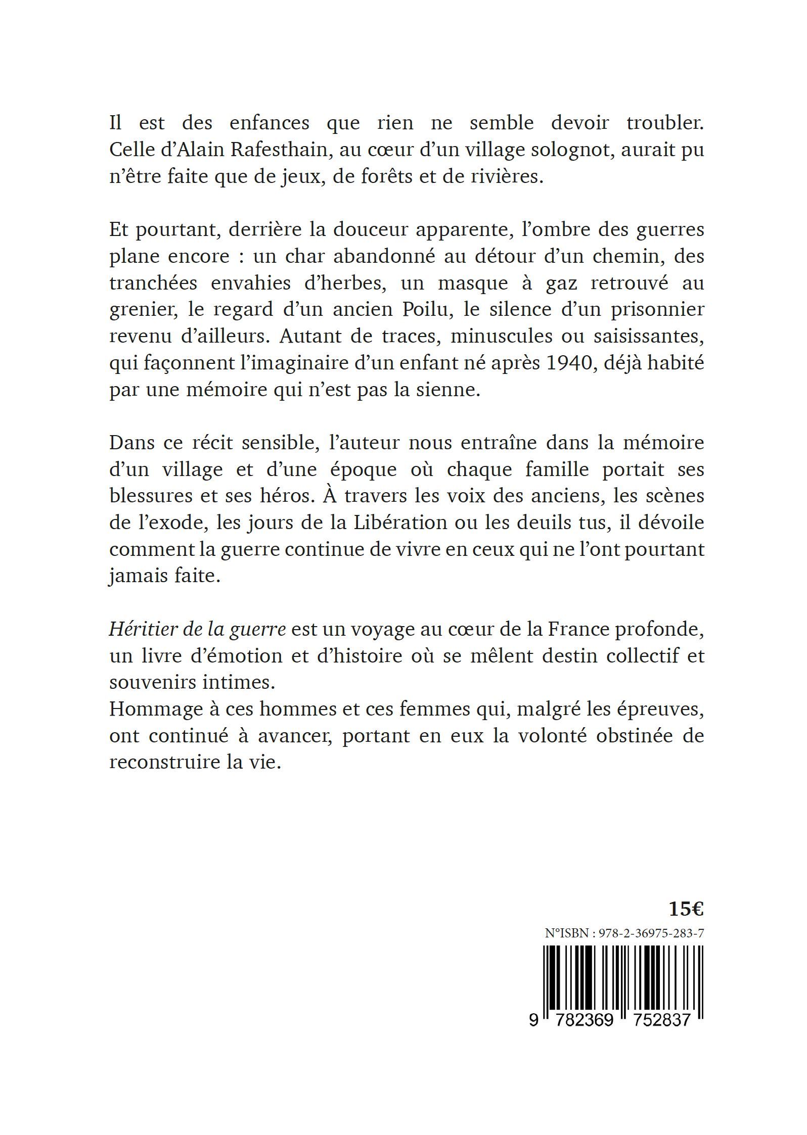 Héritier de la guerre est un voyage au cœur de la France profonde, un livre d’émotion et d’histoire où se mêlent destin collectif et souvenirs intimes.